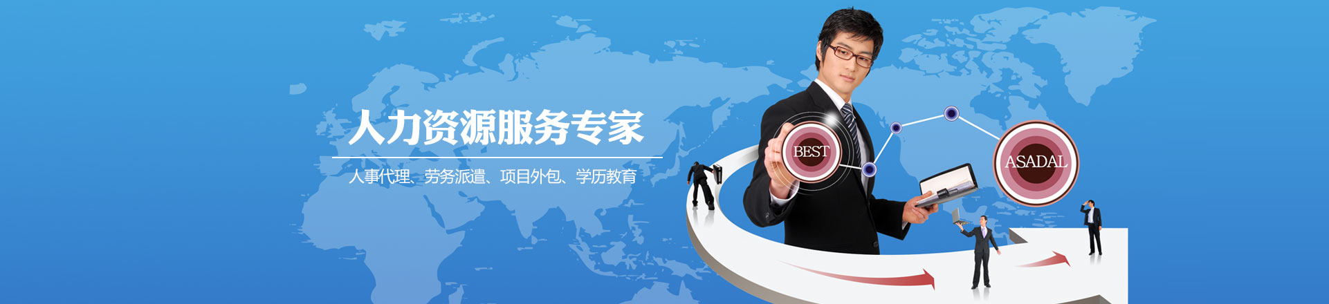 ?????我們將根據各企事業單位的需求,提供優(yōu)質的人力資源外包服務。在面向二十一世紀的今天,我們將與時俱進的順應國際化人力資源發(fā)展趨勢,創新、超越、不斷進取,以我們的專業為客戶創造更大的價值,追求與客戶共同展開騰飛的雙翼,努力創造明日的輝煌。